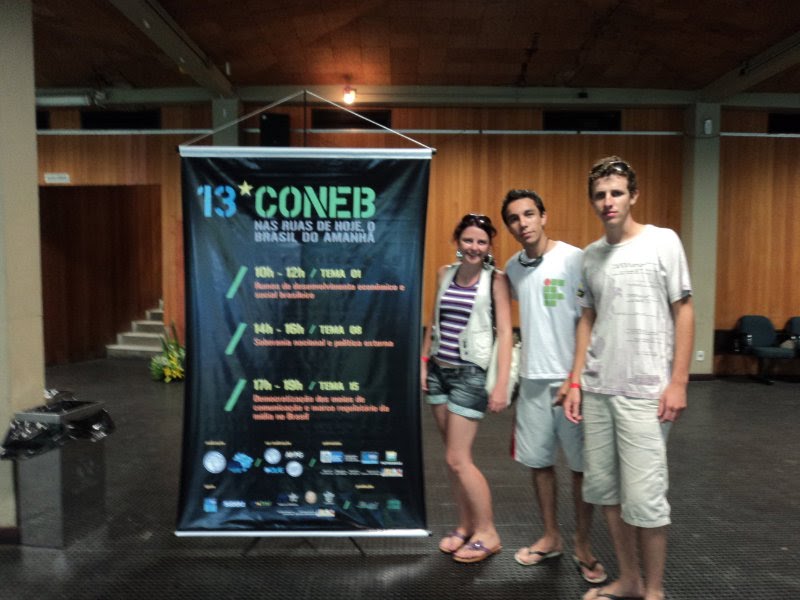 Os alunos Jean Max Rocha dos Santos, Edelvan Cossetim e Jaqueline Thalheimer, do curso de Licenciatura em Computação e membros do Centro Acadêmico (CALC) deste, do Instituto Federal Farroupilha-Campus Santo Augusto participaram do 13º CONEB e da 7ª Bienal da UNE, ambos realizados no Rio de Janeiro de 15 a 22 de janeiro.